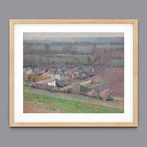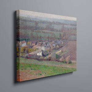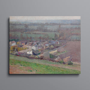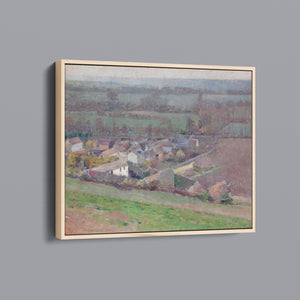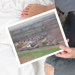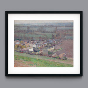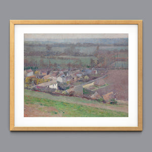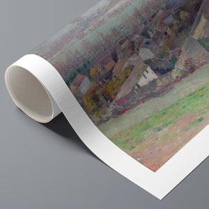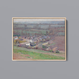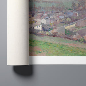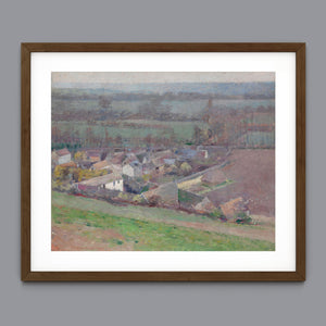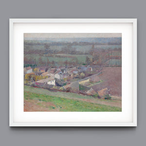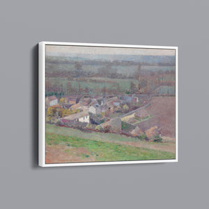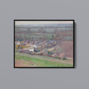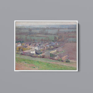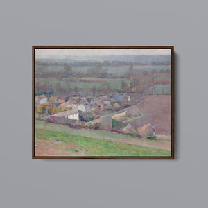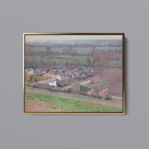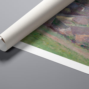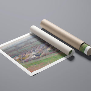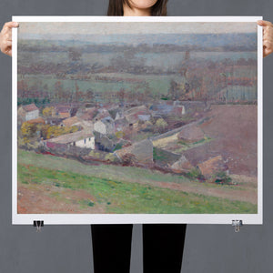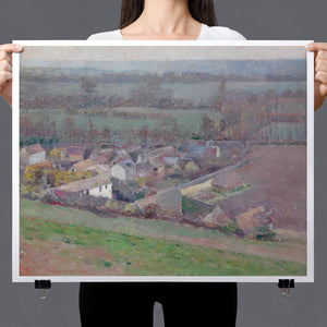 "A Bird's Eye View" by Theodore Robinson, created in 1889, is a striking example of impressionist landscape painting. This work presents a distinctive aerial perspective, capturing the essence of the landscape with Robinson’s characteristic use of bold brushstrokes and vibrant colors. The painting offers a dynamic view of the natural world, highlighting the interplay of light and shadow from an elevated angle. Robinson’s impressionistic approach allows for a lively and textured depiction of the scenery, reflecting his innovative technique and keen observation of nature. The artwork stands as a testament to Robinson’s ability to convey both the grandeur and subtle nuances of the landscape, making it a notable piece in his impressionist oeuvre and a vivid representation of late 19th-century American art.
