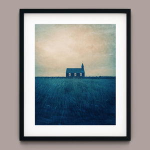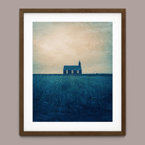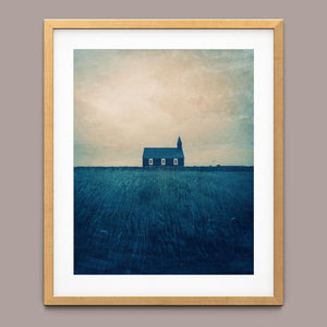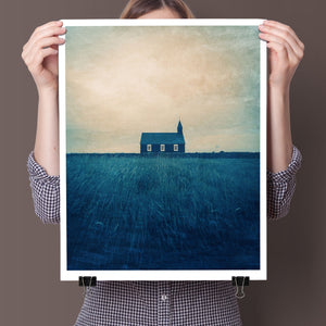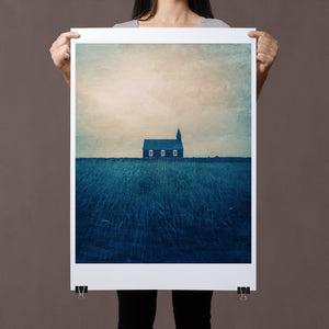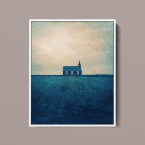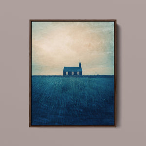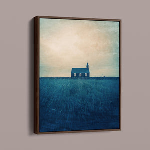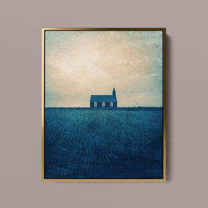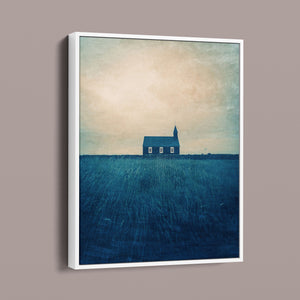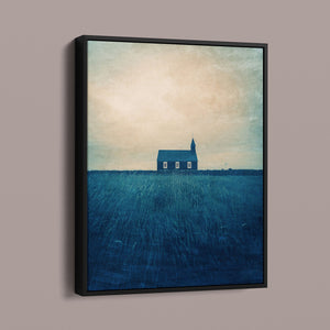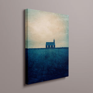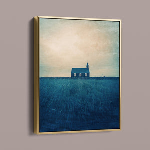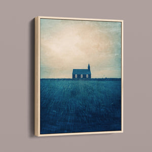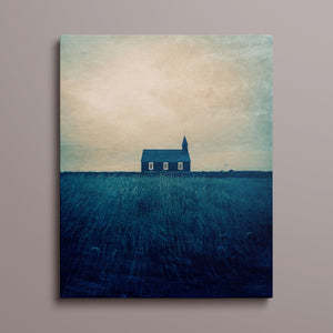 "Abandon" is a striking piece of modern art that beautifully captures the essence of rural solitude. Set against a twilight sky, this artwork depicts an old-fashioned chapel surrounded by fields of grass, rendered in soothing navy and beige hues. The painting's canvas texture and weathered details evoke a sense of nostalgia and peacefulness, reflecting a serene, quiet landscape. With its traditional and vintage charm, "Abandon" offers a timeless view of the Western countryside, blending simplicity with melancholy. Ideal for adding a touch of elegance and serenity to any space, this artwork brings a quaint, nostalgic atmosphere to modern and classic interiors alike.