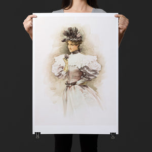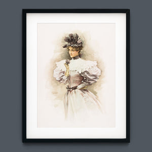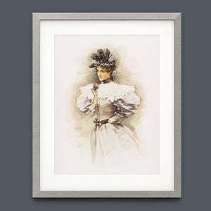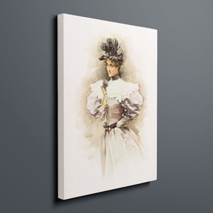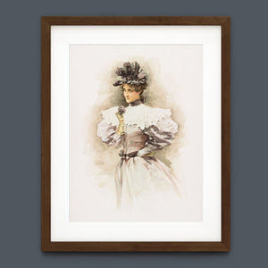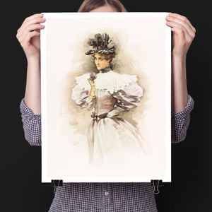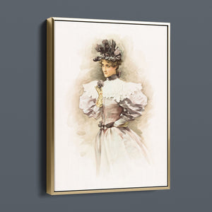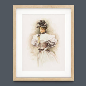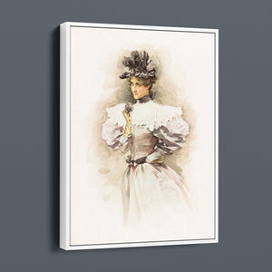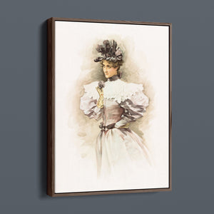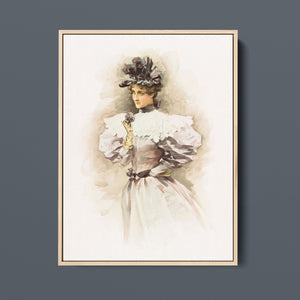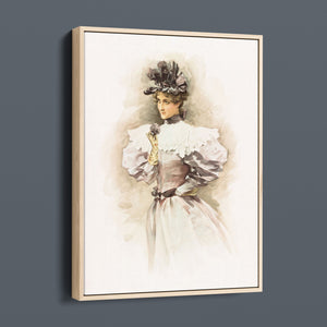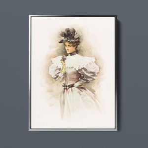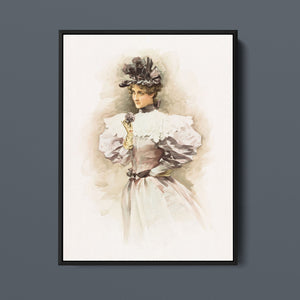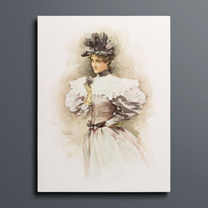19th-century portrait by John Leon Moran for G Wiedman Brewing Co, featuring an elegant woman in vintage attire with soft pastels and delicate details.