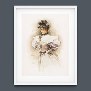 Experience the charm of Advertisement for G Wiedman Brewing Co, a vintage portrait by John Leon Moran. This 19th-century artwork features an elegant woman adorned in a stylish dress and hat, with delicate flowers and a soft pastel palette. The painting embodies the refined beauty and grace of the Victorian era, offering a nostalgic glimpse into historical fashion and feminine elegance.