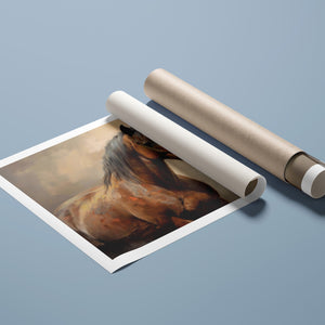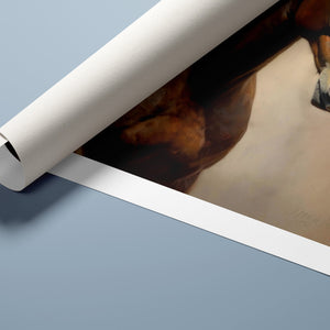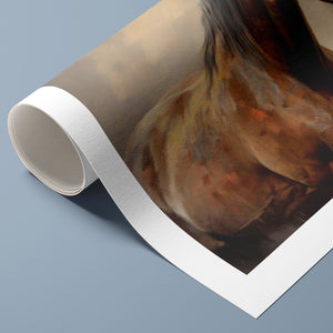 "American Heritage" is a timeless oil painting capturing the majestic presence of a brown horse with a distinctive white marking. This classic portrait celebrates the beauty and strength of the equine form, emphasizing the grace and motion of a quarter horse in its natural setting. With its vintage charm and western flair, this artwork evokes a sense of rural elegance and the enduring spirit of American equestrian tradition.