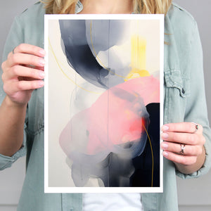 "Blush Emboldened I" combines soft blush pinks with bold strokes of yellow, gray, and white, creating a dynamic yet soothing abstract composition. The brushwork offers a beautiful contrast between fluid, translucent gradients and bold, overlapping shapes. The ethereal quality of the pastel tones blends seamlessly into the modern canvas, evoking a sense of serenity and elegance. This contemporary piece brings a fresh, expressive vibe, perfect for interior design that values both softness and boldness in harmony.