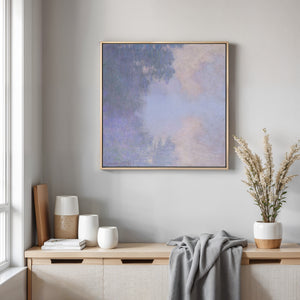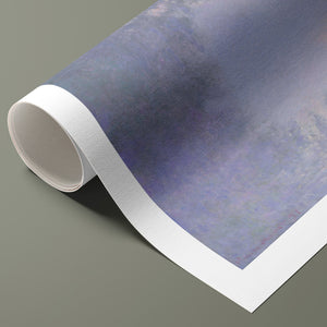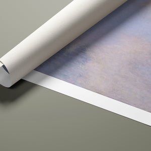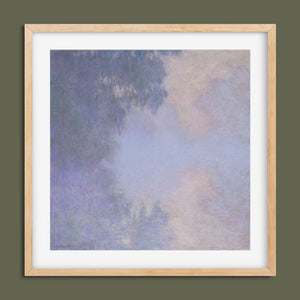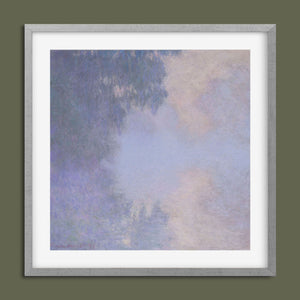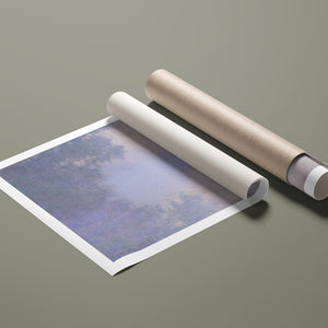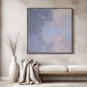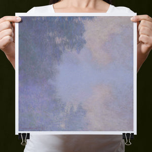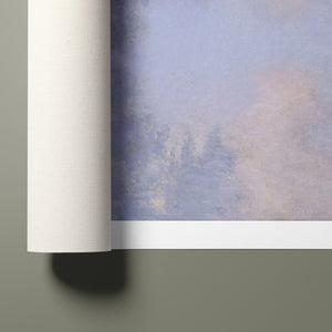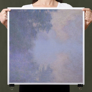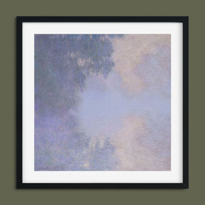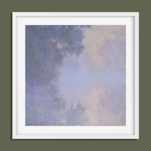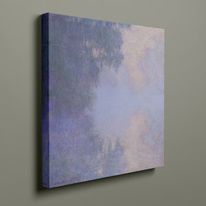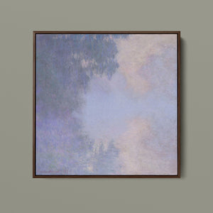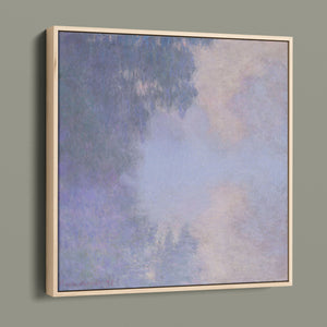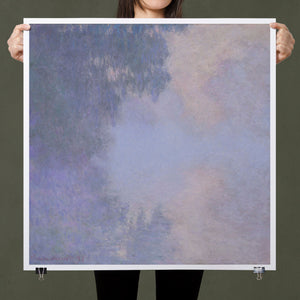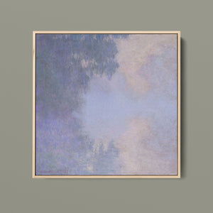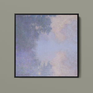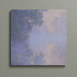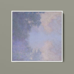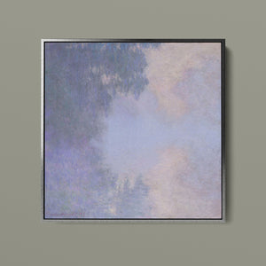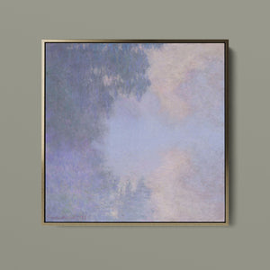 "Branch of the Seine near Giverny - Mist" by Claude Monet is a stunning vintage impressionist painting that beautifully depicts the misty serenity of the Seine River near Giverny. The artwork features a blend of purple, lavender, blue, and pink hues, capturing the soft, atmospheric effects of the morning mist on the water. Monet’s use of light and shadow, along with the delicate reflections and hazy ambiance, creates a tranquil and ethereal landscape, showcasing his mastery of impressionistic techniques.