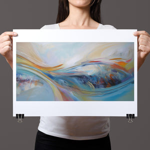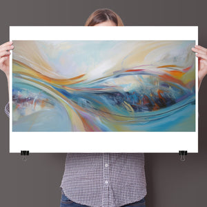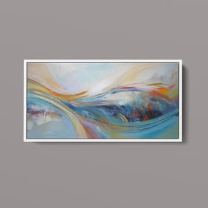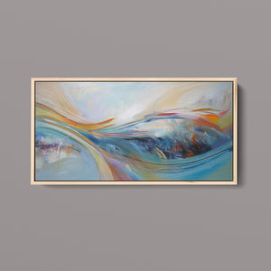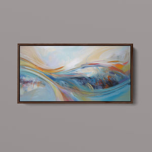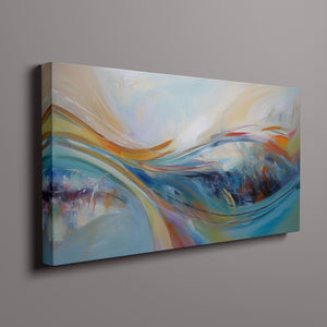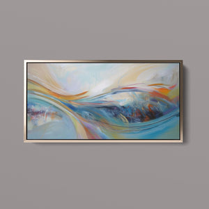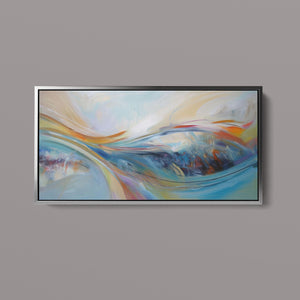 "Coral Infusion" is a mesmerizing contemporary abstract painting that celebrates the vibrant beauty of underwater life. This horizontal artwork features dynamic swirls of blue, aqua, warm orange, and soft cream, creating a harmonious blend that captures the fluidity and movement of the ocean. The textured brushstrokes evoke a sense of serenity and depth, inviting viewers into an ethereal aquatic world. Perfect for modern interiors, this piece adds an elegant touch, transforming any space into a soothing oasis inspired by the wonders of marine life.