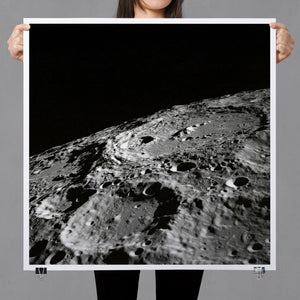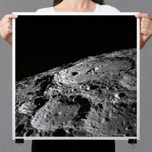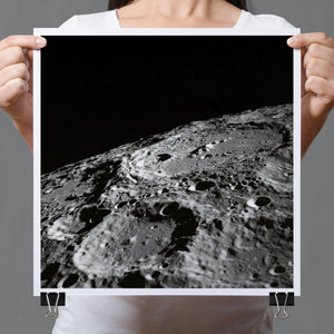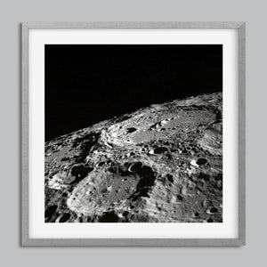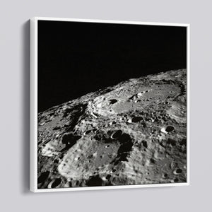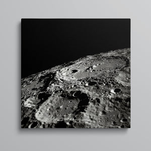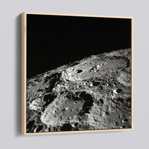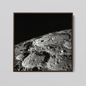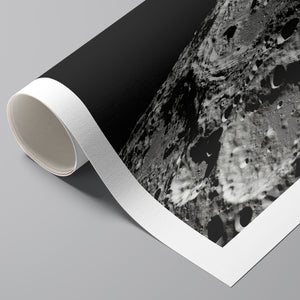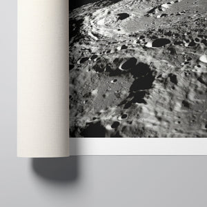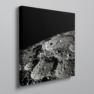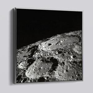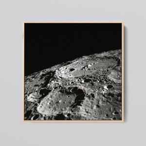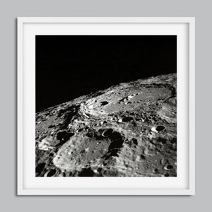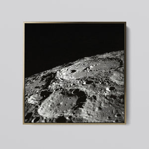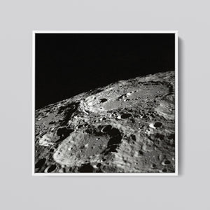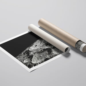 "Craters" captures the stark, desolate beauty of the moon’s surface through a monochrome lens. This black-and-white photograph showcases the intricate details of lunar craters and the barren regolith, highlighting the geological impact and pockmarked texture of the moon. The absence of atmosphere and the play of shadows create a sense of tranquility and cosmic vastness, making it a compelling piece for those captivated by space exploration and the serene beauty of the celestial void.