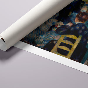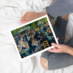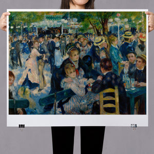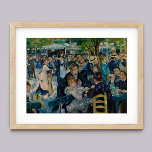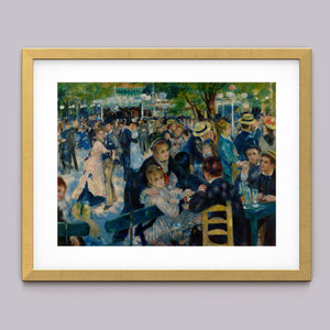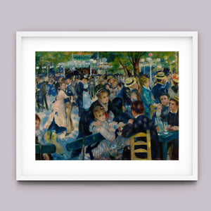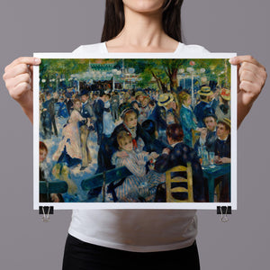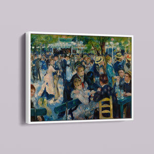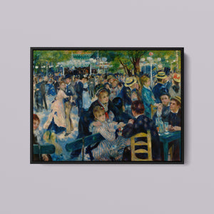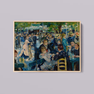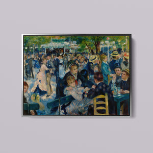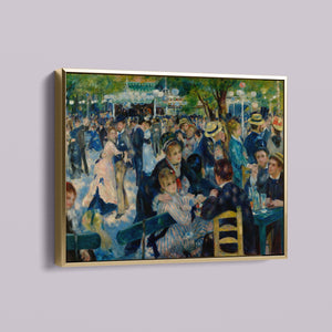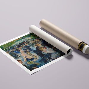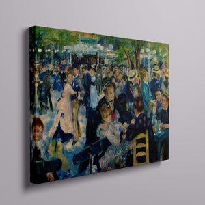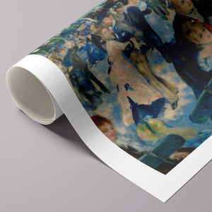 Immerse yourself in the lively atmosphere of Dance at Le Moulin de la Galette, a classic 19th-century Impressionist painting that captures a vibrant Parisian celebration. Set in the outdoor garden of Montmartre, the artwork showcases a crowd dancing and enjoying a Sunday festivity, rendered with dynamic brushwork and rich textures. The painting vividly depicts the joy, movement, and camaraderie of the scene, illuminated by light and shadow amidst the garden's trees and umbrellas.