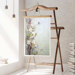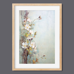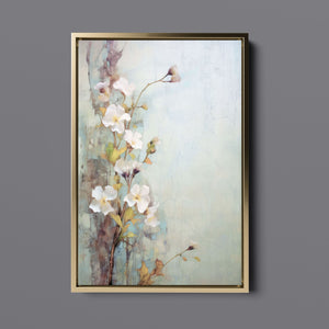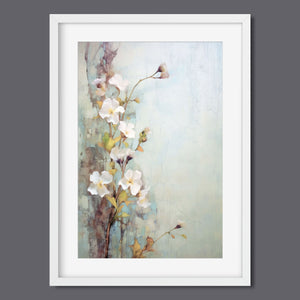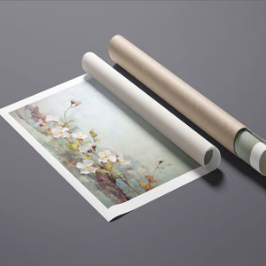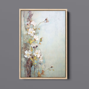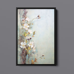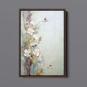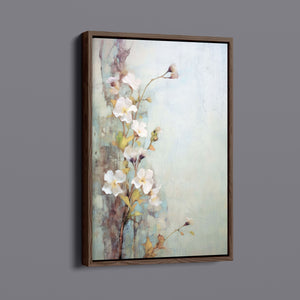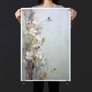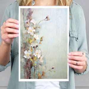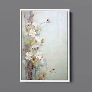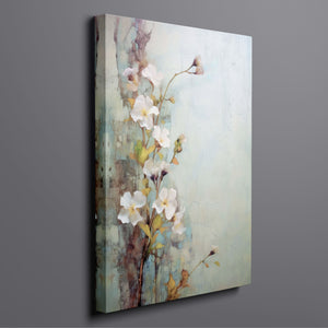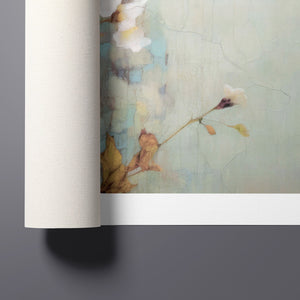 "Delicate Wallflower - Fresco Floral" is a serene, pastel-toned painting that captures the essence of a fragile bloom. With soft beige, blue, and rose gold hues, this artwork exudes a sense of vintage romance and elegance. Its delicate petals and subtle earth tones evoke the beauty of nature in springtime, while the light, ethereal textures create an atmosphere of tranquility. Perfect for adding a touch of refined beauty and gentle charm to any space, this piece blends artistic sensitivity with a timeless, country French flair.