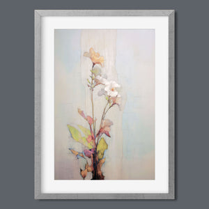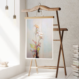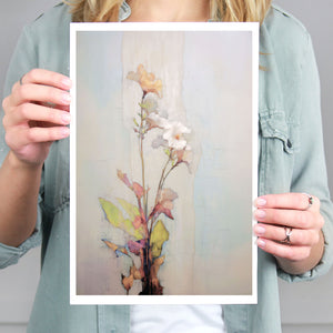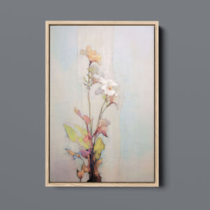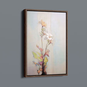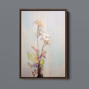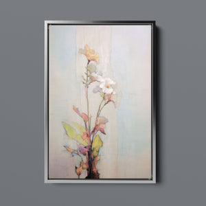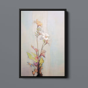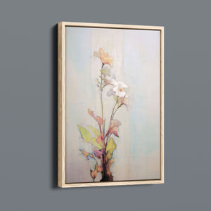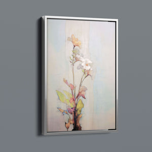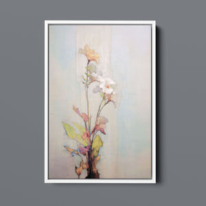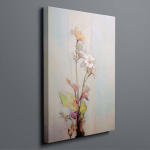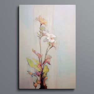 "Delicate Wallflower - Fresco Floral" is a serene, pastel-toned painting that captures the essence of a fragile bloom. With soft beige, blue, and rose gold hues, this artwork exudes a sense of vintage romance and elegance. Its delicate petals and subtle earth tones evoke the beauty of nature in springtime, while the light, ethereal textures create an atmosphere of tranquility. Perfect for adding a touch of refined beauty and gentle charm to any space, this piece blends artistic sensitivity with a timeless, country French flair.