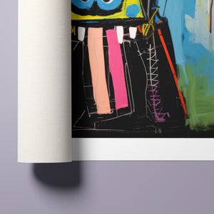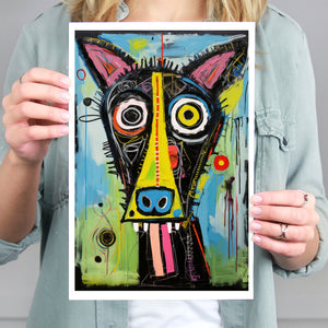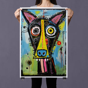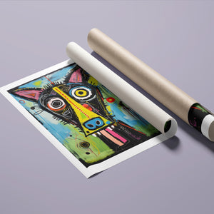 "Dry Mouth" is a striking abstract artwork that blends contemporary graffiti with whimsical elements. The piece features a vivid portrayal of discomfort and thirst through bold, expressive strokes and a dynamic use of color. The cat’s exaggerated tongue and vibrant hues evoke a sense of dehydration, while the heavy, textured lines and drip effects add depth and intensity to the modern composition. This visually compelling art piece captures the essence of urban street art with a playful and creative twist.