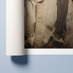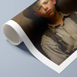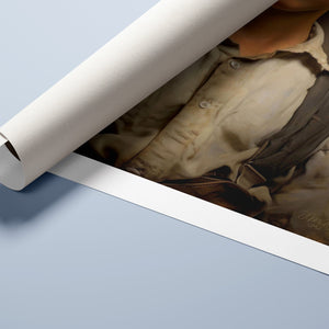 "Early Days" portrays a young boy in endearing vintage cowboy clothing. This classic oil painting reflects the rustic elegance of Western style and the innocence of youth. An ideal artwork for those who cherish nostalgic Americana and classic Western aesthetics.