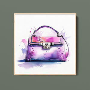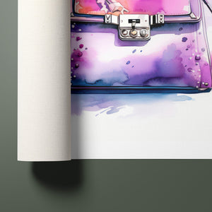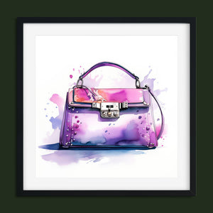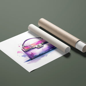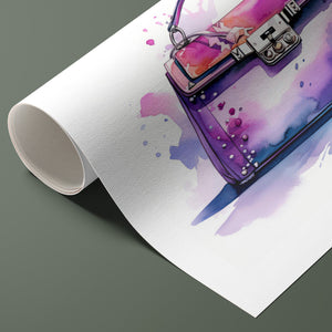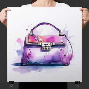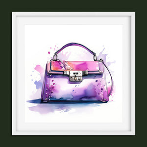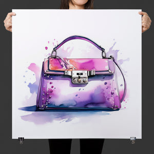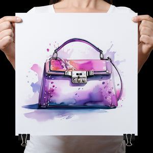 "Fashion Illustration Hand Bag" is a chic and vibrant watercolor illustration that celebrates stylish elegance in fashion design. The feminine tones of pink and purple blend beautifully in this artistic representation of a luxury handbag. With expressive inkblot splatters and dynamic brushwork, this trendy piece brings both fashion and art together, making it a perfect addition for those with an eye for design and accessories. Its playful yet sophisticated style captures the essence of modern fashion illustration.
