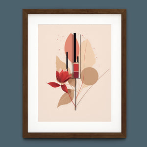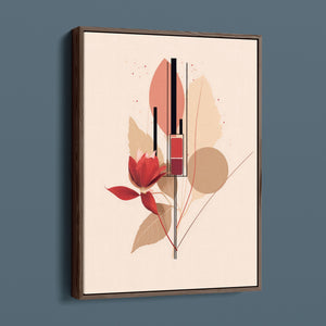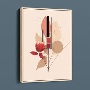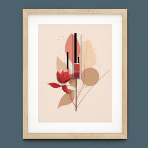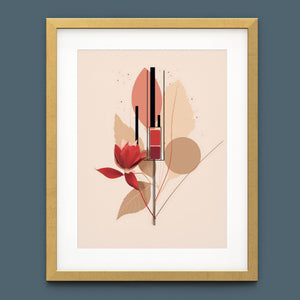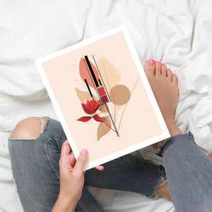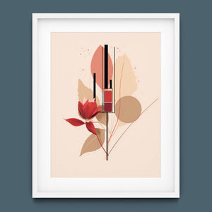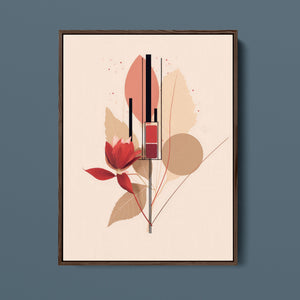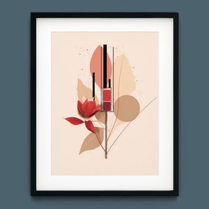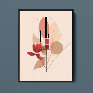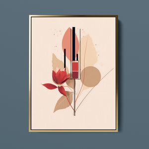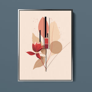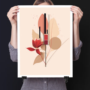 Explore the "Fashion Illustration - Red Lipstick," an elegant abstract art piece showcasing geometric and floral elements with warm autumn tones. This minimalist illustration blends beauty and fashion in a modern and tranquil design.