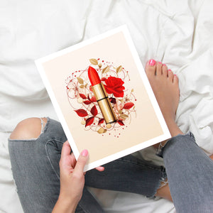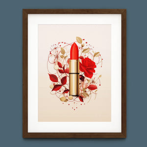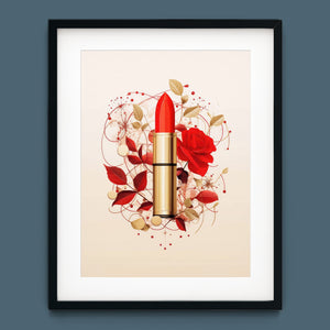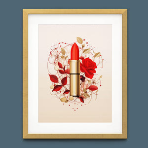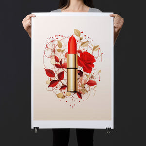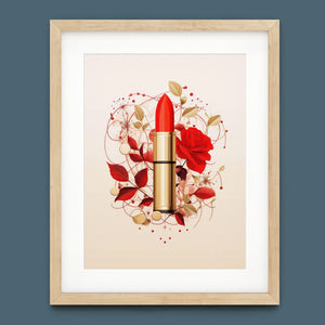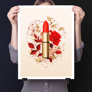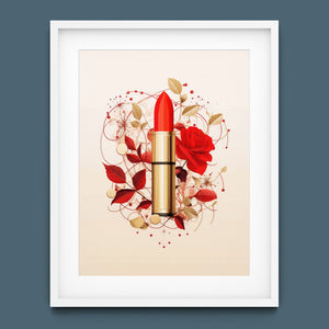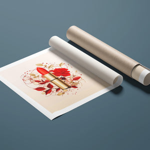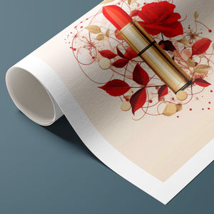 Discover the "Fashion Illustration - Red Lipstick and Petals," a vibrant art piece combining red lipstick, roses, and petals with abstract swirls. This elegant illustration blends beauty, luxury, and glamour in a feminine and artistic design.