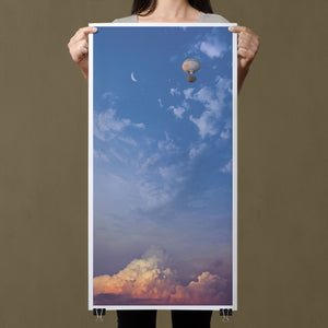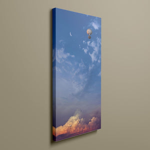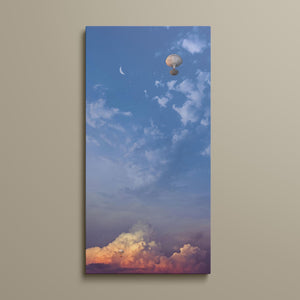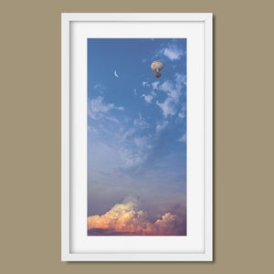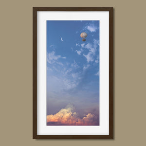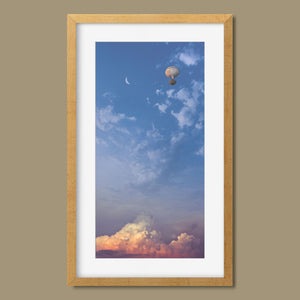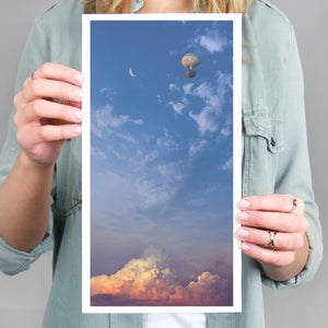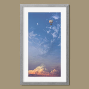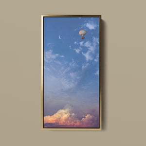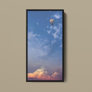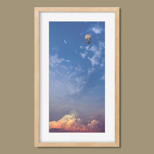 "Floating Among the Stars" captures a serene and whimsical journey through the twilight skies. This enchanting illustration features a beautifully designed airship drifting among fluffy clouds and a crescent moon, set against a backdrop of soft purple, pink, and rose gold hues. The pastel colors evoke a sense of calm and tranquility, inviting viewers to embark on a daydream of high-altitude exploration. The artwork encapsulates the magic of sky travel and the adventure of discovering the serene beauty of the evening sky, making it a captivating piece for fantasy art enthusiasts.