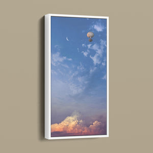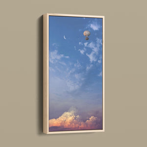 Same high quality gallery-wrapped stretched canvas showcased in a distinctive wood float frame. Available in Black, White, Silver, Gold, Natural/Oak, or Walnut/Espresso.
