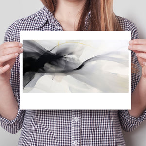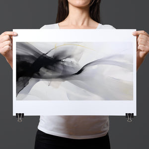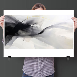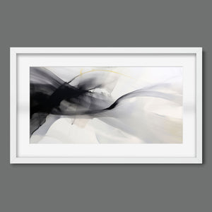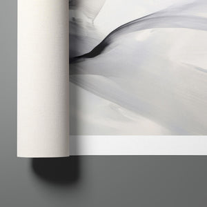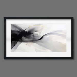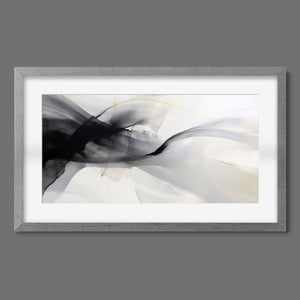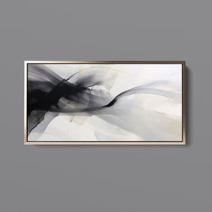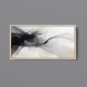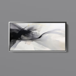 "Fluid I" is a captivating contemporary artwork that embodies the beauty of motion and elegance through a striking monochrome palette. This horizontal piece features dynamic swirls of black, white, and shades of gray, creating a mesmerizing gradient that flows seamlessly across the canvas. The minimalist design showcases gentle curves and wavy streaks, inviting viewers into a tranquil space of artistic expression. With its soft textures and fluid movement, this piece effortlessly enhances any modern decor, making it a perfect focal point for those who appreciate contemporary artistry.