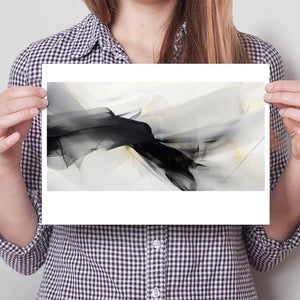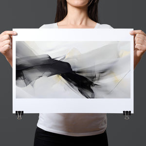 "Fluid II" is a mesmerizing contemporary abstract artwork that elegantly captures the essence of motion through a rich interplay of black, white, and soft gray tones. This dynamic piece features flowing waves and smooth gradients, evoking a sense of ethereal tranquility. Subtle highlights of silver and gold add a touch of luxury, while the translucent layers create depth and texture that invite exploration. The graceful curves and simplicity of the design convey a modern sophistication, making it a perfect statement piece for any contemporary space, blending creativity with a serene atmosphere.