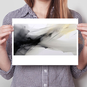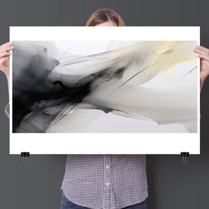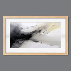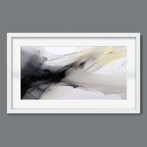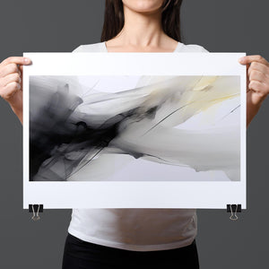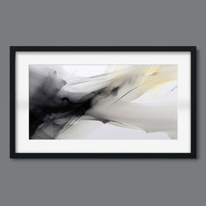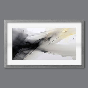 "Fluid IV" is a stunning contemporary abstract artwork that captures the delicate interplay of fluid motion and ethereal beauty through a harmonious blend of black, white, gray, and soft yellow. This piece features graceful swirls and gentle gradients, creating an impression of lightness and serenity. The dynamic textures evoke a sense of soothing flow, reminiscent of ink swirling in water, while the elegant contrasts invite contemplation and reflection. Perfect for modern interiors, this artwork serves as a tranquil focal point, infusing any space with artistic sophistication and organic grace.