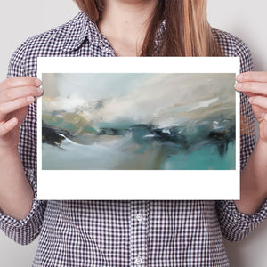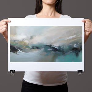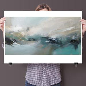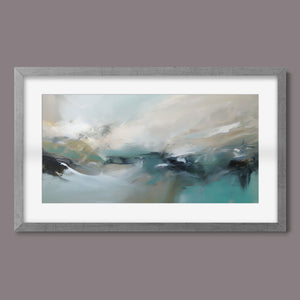 "For the Love of the Sea III" is a captivating contemporary abstract painting that immerses the viewer in the tranquil beauty of the ocean. This horizontal artwork showcases soft aquamarine, white, and taupe hues, depicting gentle waves and ethereal seafoam through expressive brushstrokes. The fluidity of the design evokes a serene coastal ambiance, inviting a sense of calm and relaxation. Ideal for modern interiors, this piece serves as an elegant focal point, bringing the soothing essence of the seashore into any space and transforming it into a tranquil retreat.