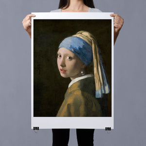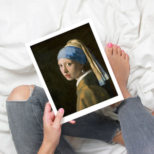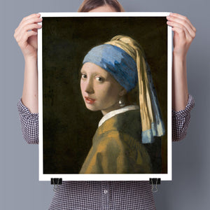 "Girl with a Pearl Earring" by Johannes Vermeer is an iconic 17th-century portrait renowned for its enigmatic beauty and exquisite technique. The painting depicts a young girl with a mesmerizing gaze, adorned with a pearl earring and set against a dark, softly illuminated background. Vermeer's masterful use of light and color, combined with the girl's captivating expression, creates a timeless piece that continues to fascinate and inspire. This artwork exemplifies the elegance and intrigue of Dutch Golden Age art, making it a standout piece in any art collection or study of classical portraiture.
