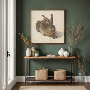 "Hare by Albrecht Dürer" is a distinguished classic from the Renaissance period, capturing the intricate beauty of a hare with exceptional detail and naturalistic precision. Rendered in watercolor, this vintage masterpiece displays Dürer's mastery in depicting fur texture and shading, offering a glimpse into the meticulous artistry of the historic European period. Ideal for art enthusiasts and collectors of fine art.