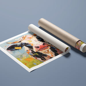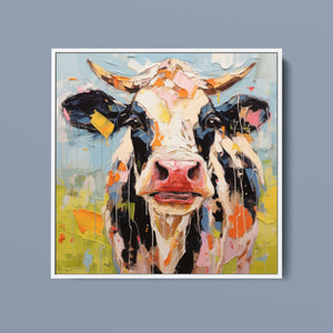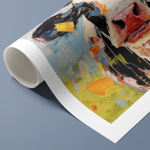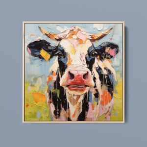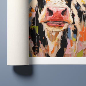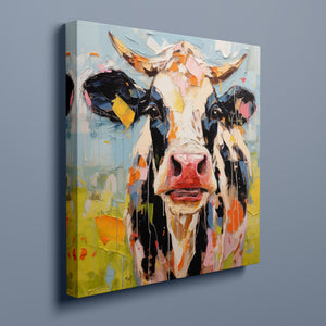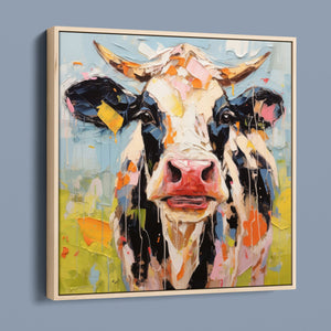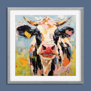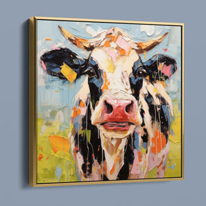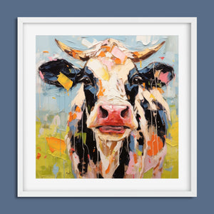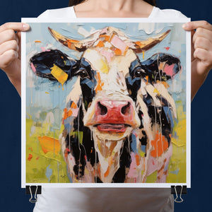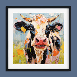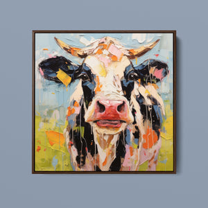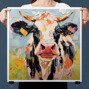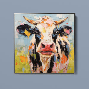 "Impasto Farms - Bold Colorful Happy Cow" is a lively and whimsical painting that brings a burst of color and joy to your space. Featuring a cheerful cow rendered in vibrant hues and rich impasto texture, this contemporary artwork captures the playful essence of farm life with a modern twist. The bold, abstract style and joyful theme make it a standout piece for any art collection.