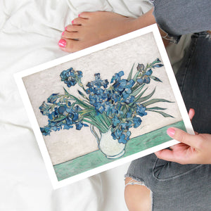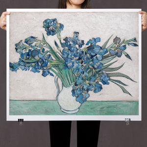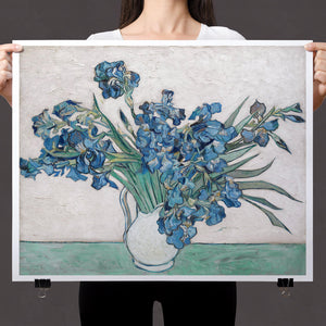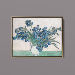 The enhanced "Irises" (1890) by Vincent Van Gogh offers a vivid reimagining of one of his most renowned Post-Impressionist works. This painting, brimming with color and life, features a dynamic arrangement of irises rendered in Van Gogh's signature style. The enhanced details emphasize the bold, swirling brushstrokes and the rich, textured layers of paint that characterize Van Gogh's work. The irises' deep blues and vibrant purples stand out against a lush green backdrop, showcasing Van Gogh’s masterful use of color and form. This enhanced edition brings out the intricate details and emotional depth of the original painting, offering a fresh perspective on Van Gogh's ability to capture the essence of nature. The lively composition and expressive brushwork of "Irises" reflect Van Gogh’s profound connection to the natural world and his innovative approach to art.
