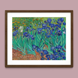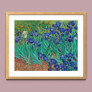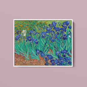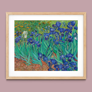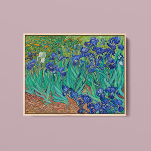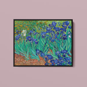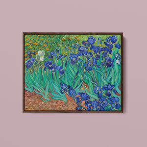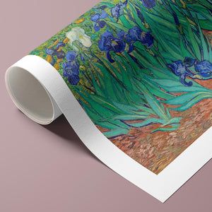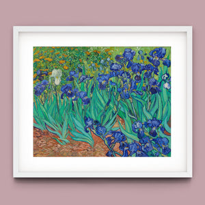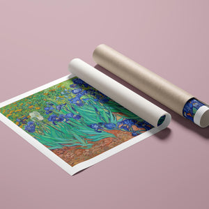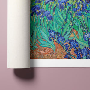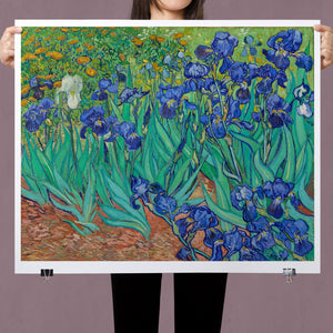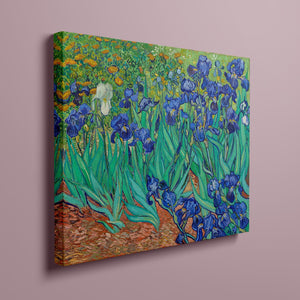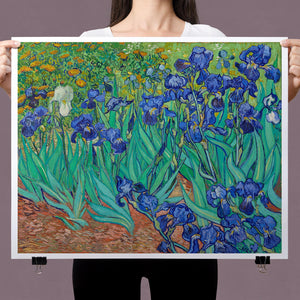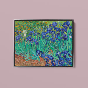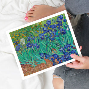 "Irises," painted by Vincent Van Gogh in 1890, stands as a quintessential example of his Post-Impressionist artistry. This celebrated painting showcases a cluster of irises, rendered with Van Gogh’s characteristic vigor and expressive brushwork. The composition features a striking interplay of deep blues, purples, and vibrant greens, capturing the irises in a moment of dynamic bloom. Van Gogh's use of thick, swirling strokes and his innovative approach to color create a textured, almost tactile quality to the painting. The lush background contrasts with the vivid irises, drawing the viewer’s eye to the intricate details and emotive intensity of the flowers. "Irises" not only highlights Van Gogh's technical mastery but also reflects his deep appreciation for the natural world and his ability to convey its beauty and vitality through art.