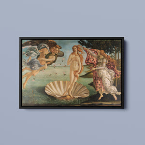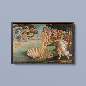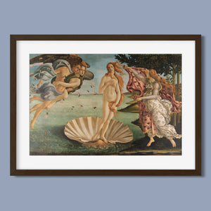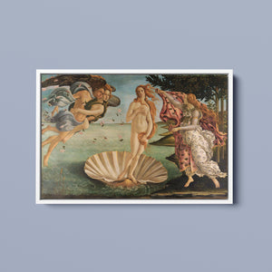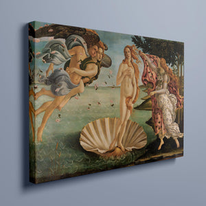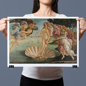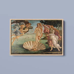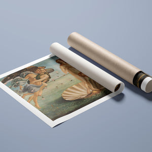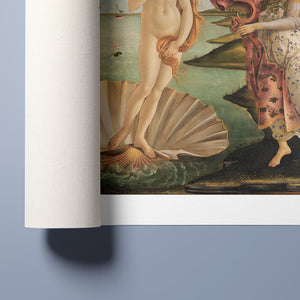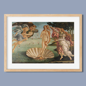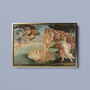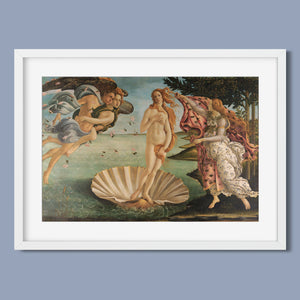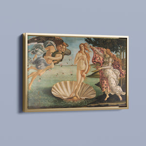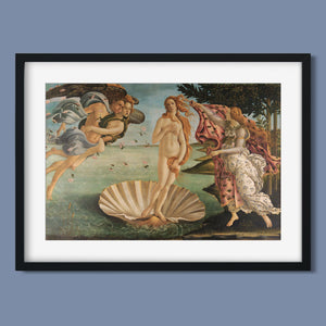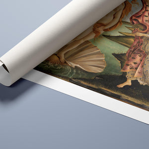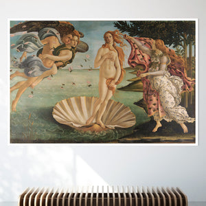 A classic Renaissance painting depicting the goddess Venus emerging from the sea, surrounded by mythological figures and flowers, symbolizing beauty and grace.