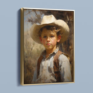 Young boy in vintage cowboy outfit, capturing the nostalgic and charming essence of Western fashion and childhood.