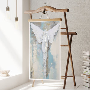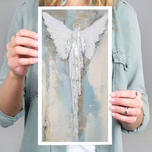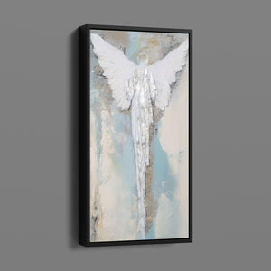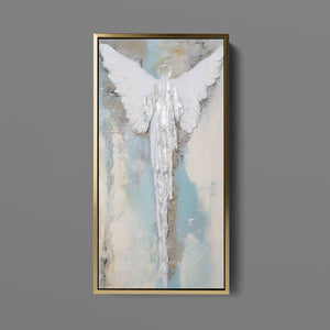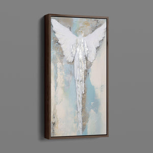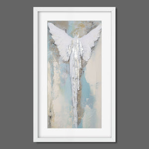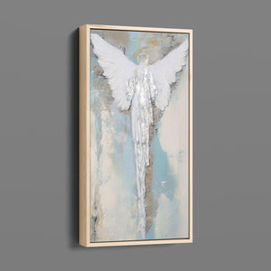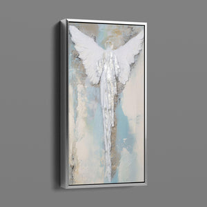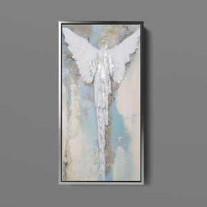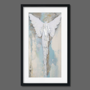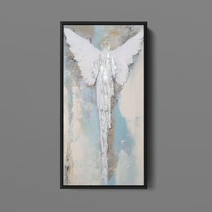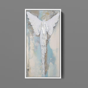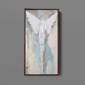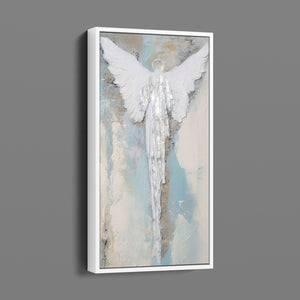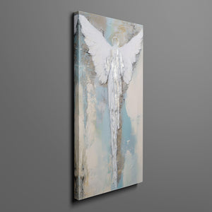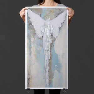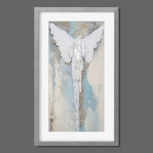 "Ministering Angel II" is a breathtaking modern art piece that embodies the grace and tranquility of a celestial angel. This vertical artwork features a beautifully textured sculpture of an angel with delicate white wings, set against a serene gray and silver backdrop. The gentle interplay of light and shadow enhances its ethereal quality, evoking a sense of peace and hope. Ideal for wall-mounted decor, this inspirational piece serves as a reminder of spiritual guidance and divine presence, making it a stunning addition to any space seeking elegance and serenity.