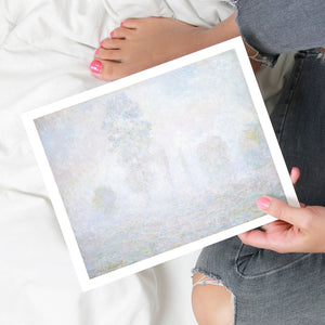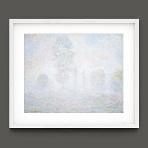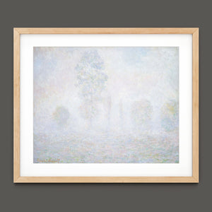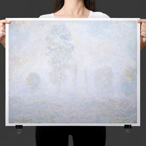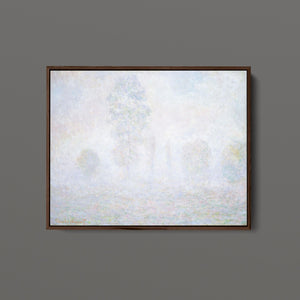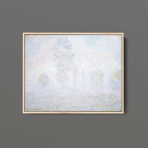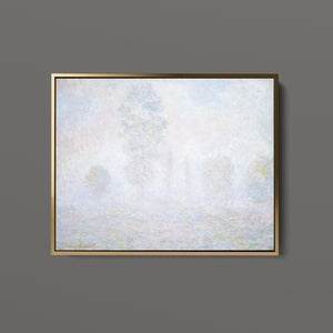 "Morning Haze" by Claude Monet is a captivating Impressionist painting that masterfully captures the ethereal beauty of dawn. Painted in 1894, this artwork portrays a misty landscape with soft, diffused light filtering through a morning haze. Monet's innovative use of color and brushstroke techniques creates a tranquil atmosphere, highlighting the interplay between light and fog. The scene is characterized by its muted tones and subtle gradations, reflecting Monet’s ability to evoke mood and atmosphere through his distinct Impressionist style. This piece is a testament to Monet's fascination with the natural world and his talent for capturing fleeting moments of beauty and serenity.