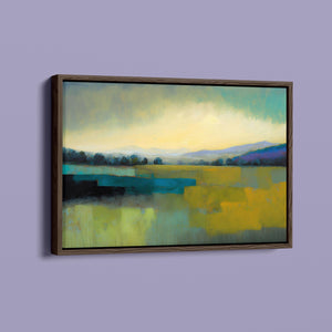 Same high quality gallery-wrapped stretched canvas showcased in a distinctive wood float frame. Available in Black, White, Silver, Gold, Natural/Oak, or Walnut/Espresso.