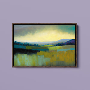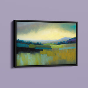 Same high quality gallery-wrapped stretched canvas showcased in a distinctive wood float frame. Available in Black, White, Silver, Gold, Natural/Oak, or Walnut/Espresso.