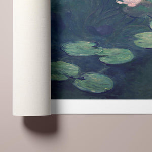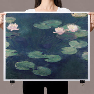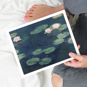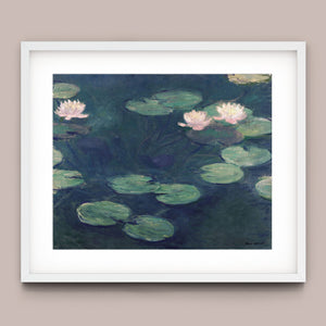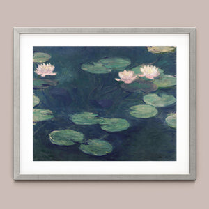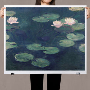 "Ninfee Rosa" by Claude Monet is a stunning example of the artist's iconic water lily series, painted during the early 20th century. This Impressionist masterpiece highlights Monet's extraordinary ability to capture the delicate beauty of his garden pond with a focus on pink water lilies. The painting is characterized by its soft, ethereal colors and the fluid brushstrokes that create a sense of movement and reflection on the water’s surface. Monet's use of light and color in "Ninfee Rosa" evokes a serene and tranquil atmosphere, allowing viewers to experience the peaceful beauty of nature as Monet saw it. This work stands as a testament to Monet’s innovative approach to landscape painting and his profound impact on the Impressionist movement.