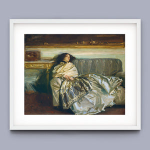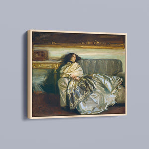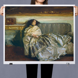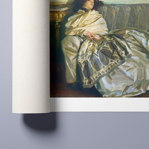 "Nonchaloir - Repose" by John Singer Sargent is a distinguished portrait that embodies serenity and sophistication. Created in the early 20th century, this painting depicts a figure in a moment of relaxed repose, showcasing Sargent’s exceptional skill in rendering texture, light, and subtle emotion. The composition highlights the subject's calm demeanor, enhanced by Sargent’s meticulous attention to detail and mastery of brushwork. The use of soft, muted colors and refined textures contributes to the overall sense of tranquility and grace. Sargent’s ability to capture both the elegance of his subject and the nuanced interplay of light and shadow makes this artwork a compelling example of his portraiture and a testament to his artistic prowess.