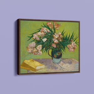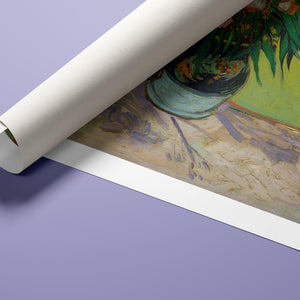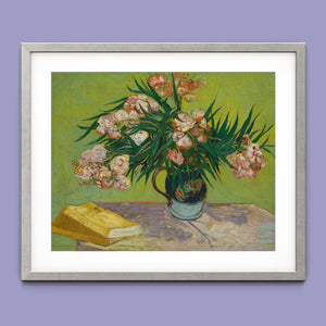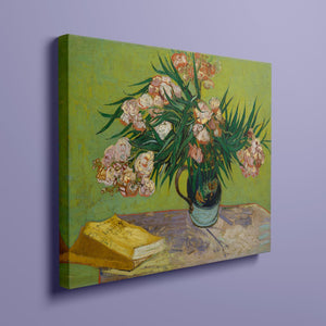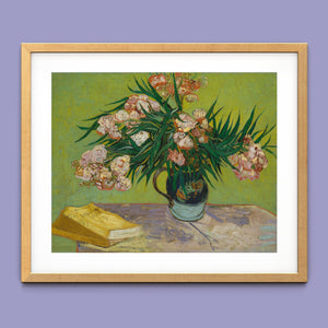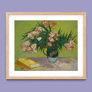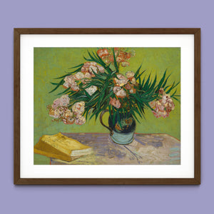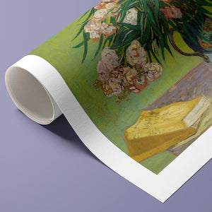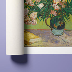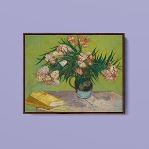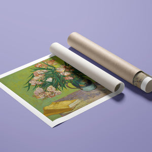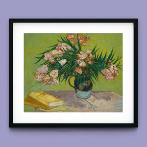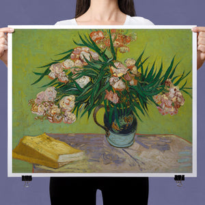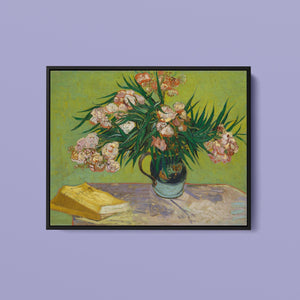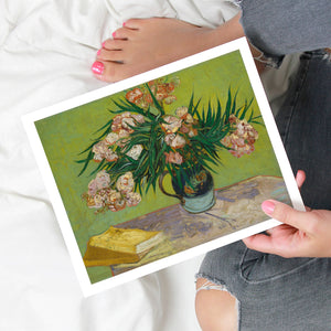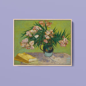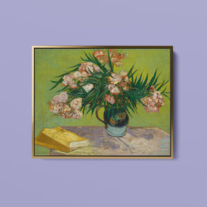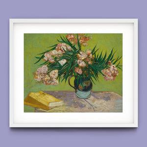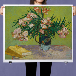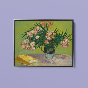 "Oleanders," painted by Vincent Van Gogh in 1888, exemplifies his vibrant Post-Impressionist style with its bold portrayal of oleander flowers. In this artwork, Van Gogh captures the rich hues of the oleanders with his characteristic energetic brushstrokes and expressive use of color. The painting features clusters of the pink and white flowers against a contrasting backdrop, with Van Gogh’s dynamic application of paint adding texture and movement to the composition. The vivid greens and lively pinks highlight Van Gogh’s innovative approach to capturing the essence and vibrancy of nature. "Oleanders" reflects both Van Gogh's technical skill and his deep emotional connection to the natural world, showcasing his ability to infuse everyday subjects with profound artistic expression.