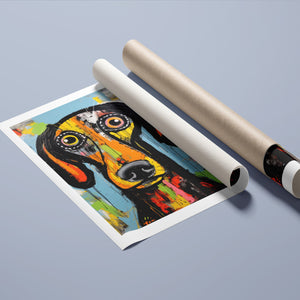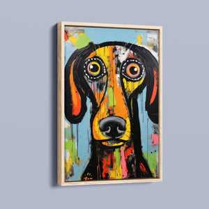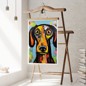 An abstract, vibrant depiction of a canine with a deep emotional expression.