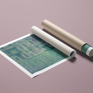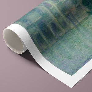 Discover "Palazzo da Mula Venice" by Claude Monet, a vintage Impressionist painting capturing the historic architecture of Venice with its serene waterways and reflections. This classic artwork from 1908 features Monet’s signature pastel colors and impressionist technique, depicting a peaceful waterfront scene with gondolas and intricate building details.