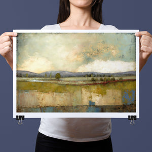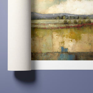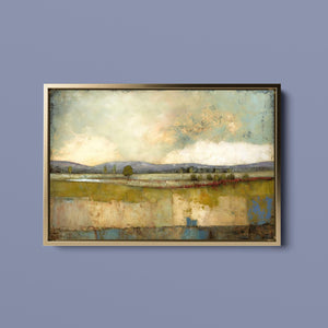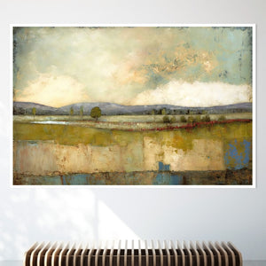 "Patchwork Prairie" is an enchanting abstract artwork that captures the charm of rural landscapes with its vibrant and pastel tones. This painting showcases a beautiful patchwork of fields and meadows under a soft sky, evoking a sense of serenity and calm. The artistic brushstrokes reflect the tranquility of the countryside, making it a perfect addition to any home seeking a touch of rustic elegance. Ideal for lovers of nature-inspired art, this piece invites you to experience the beauty of the prairies in a unique and artistic way.