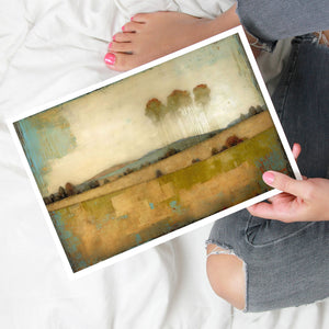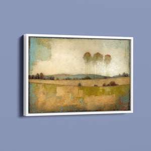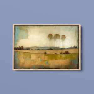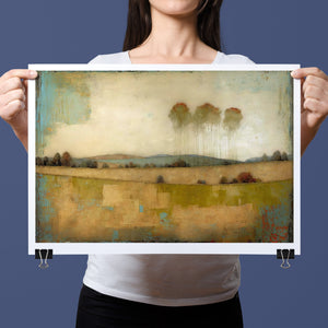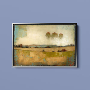 "Patchwork Prairie Paradise" is a captivating abstract landscape painting that beautifully portrays the essence of serene rural life. Featuring a harmonious blend of orange, beige, blue, and yellow, this artwork showcases rolling hills and patchwork fields beneath a tranquil sky. The textured brushwork adds depth and dimension, inviting viewers to immerse themselves in the peacefulness of nature. Ideal for those who appreciate rustic charm, this piece brings the simplicity of the countryside into your home, creating a calming atmosphere.