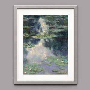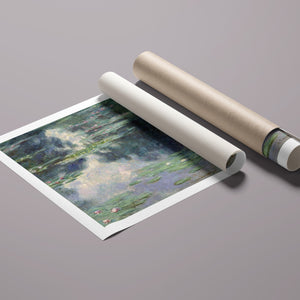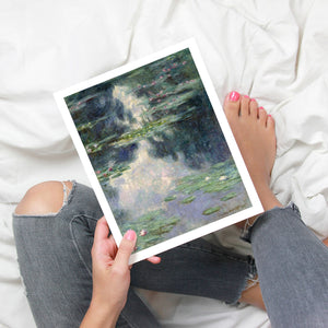 Discover "Pond with Water Lilies" by Claude Monet, a vintage Impressionist painting that captures serene lily pads and lush vegetation. This classic artwork features Monet’s signature oil painting techniques, with reflections and pastel colors creating a tranquil, atmospheric waterscape.