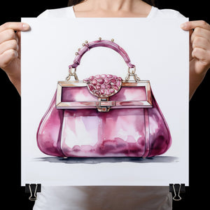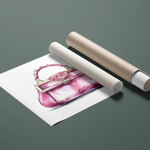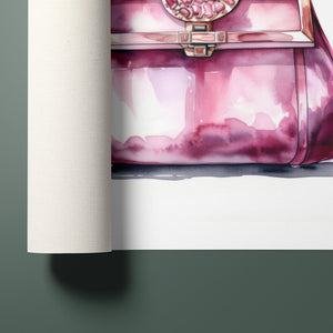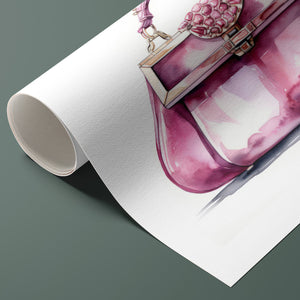 "Red Fashion Illustration Hand Bag" showcases the elegance of a designer clutch in a sophisticated watercolor style. This artwork highlights the feminine charm of a pink handbag with delicate detailing, from its shiny metallic clasp to its luxurious texture. With vibrant, artistic flair, this piece brings together fashion and art, making it the perfect statement for those who appreciate style and sophistication. Its chic design and intricate brushwork capture the essence of modern accessories.
