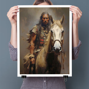 Riding with the Wind - Classic Portrait of an American Indian Brave and Horse