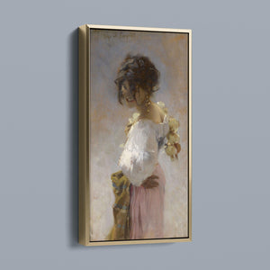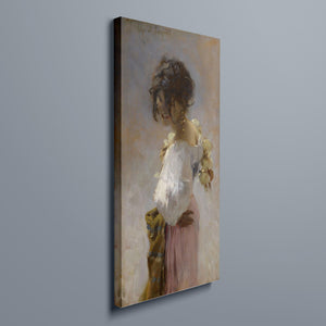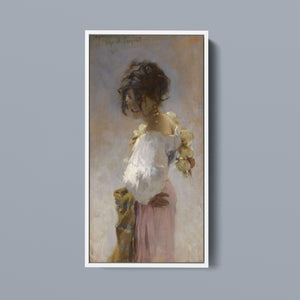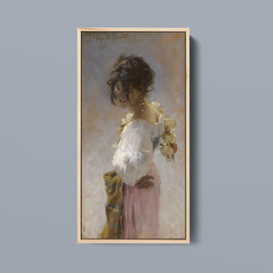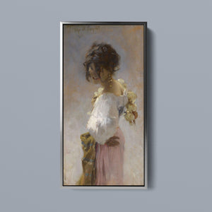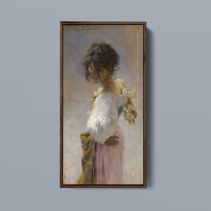 Rosina is an exquisite portrait by John Singer Sargent, capturing a woman in a soft light that highlights her rosy cheeks and elegant attire. The painting showcases Sargent's impressionistic style, featuring a half-length side profile adorned with delicate flowers. With its romantic and introspective qualities, this artwork reflects the vintage charm and fine artistry characteristic of Sargent's work.