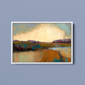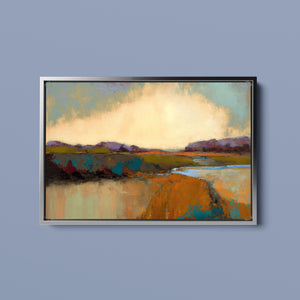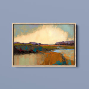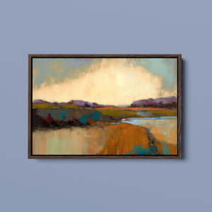 Same high quality gallery-wrapped stretched canvas showcased in a distinctive wood float frame. Available in Black, White, Silver, Gold, Natural/Oak, or Walnut/Espresso.