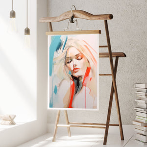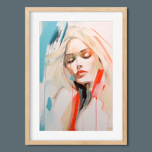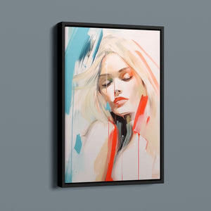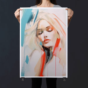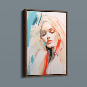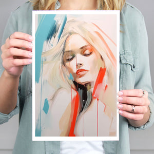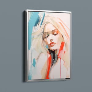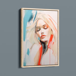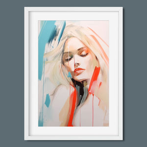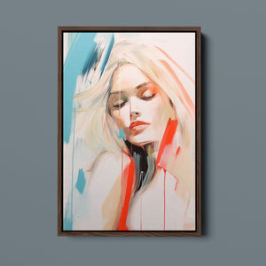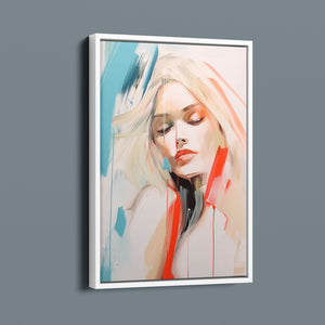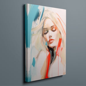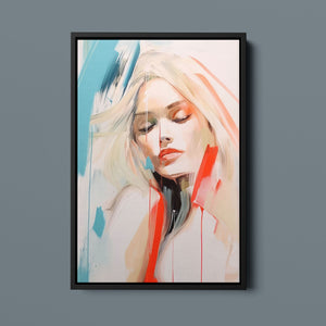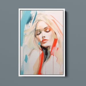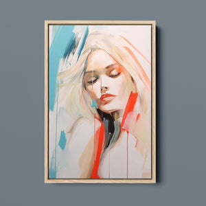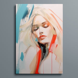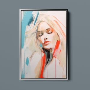 A captivating blend of abstract and figurative art, our Sasha series features a modern portrait of a woman, rendered with expressive brushstrokes and vibrant colorplay. The bold mix of blue, red, white, and beige creates a striking contrast, infusing the canvas with emotional depth and artistic flair. Her serene gaze and soft expression invite viewers to explore the layers of beauty and femininity within the textured composition. This contemporary piece exudes elegance and allure, with a harmonious balance of pastel tones and bold splashes that evoke both subtlety and dynamism.