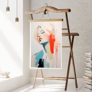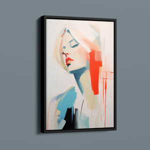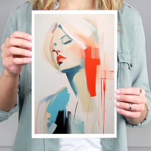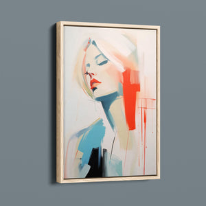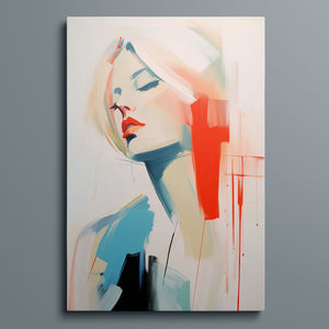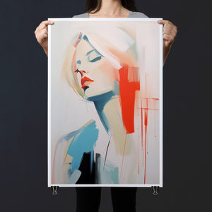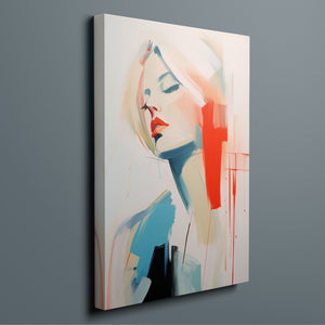 A captivating blend of abstract and figurative art, our Sasha series features a modern portrait of a woman, rendered with expressive brushstrokes and vibrant colorplay. The bold mix of blue, red, white, and beige creates a striking contrast, infusing the canvas with emotional depth and artistic flair. Her serene gaze and soft expression invite viewers to explore the layers of beauty and femininity within the textured composition. This contemporary piece exudes elegance and allure, with a harmonious balance of pastel tones and bold splashes that evoke both subtlety and dynamism.