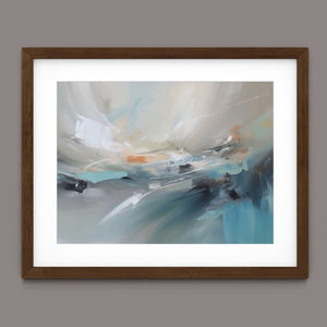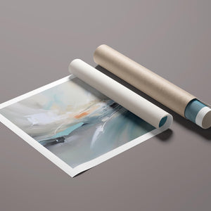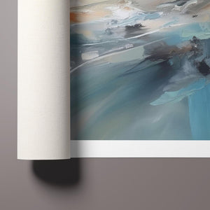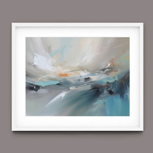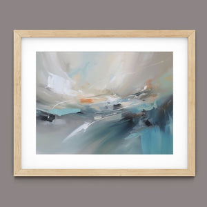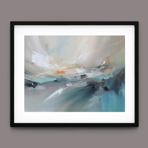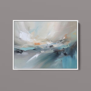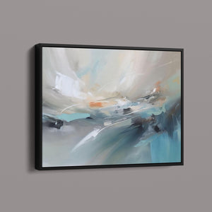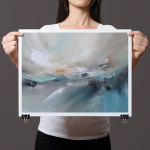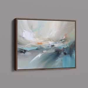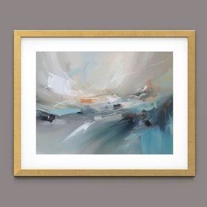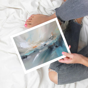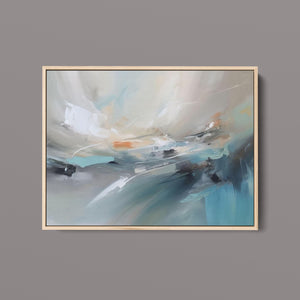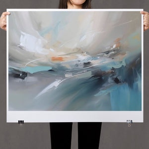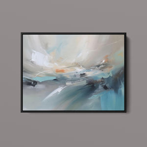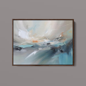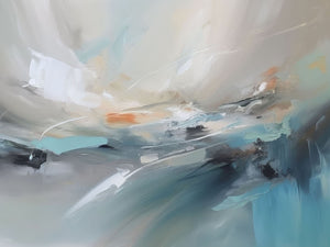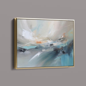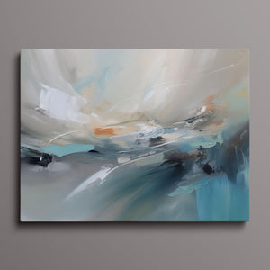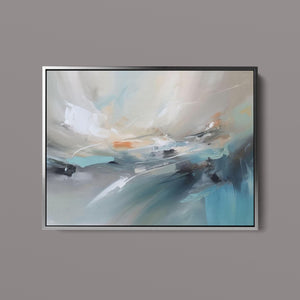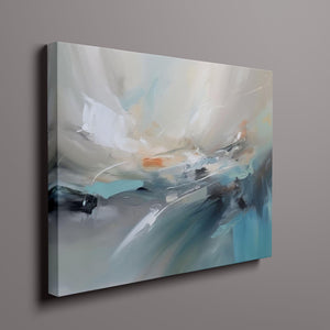"Sea Breeze" is a modern abstract painting that beautifully encapsulates the serene atmosphere of the beach and ocean. Measuring 4x3 horizontally, this artwork showcases a cool palette with shades of blue, gray, and gold, creating a tranquil and soothing coastal scene. The dynamic brushstrokes and gentle textures blend seamlessly, conveying the motion and tranquility of the sea. With its soft, pastel tones and airy, impressionistic style, "Sea Breeze" brings a touch of coastal elegance to any space, making it a perfect addition to contemporary wall decor. The piece evokes the calm and beauty of oceanic elements, offering a refreshing and artistic interpretation of the beach.