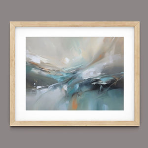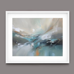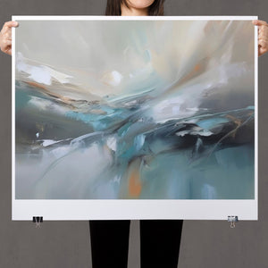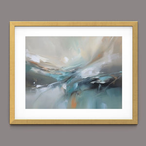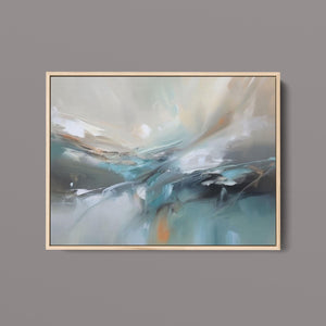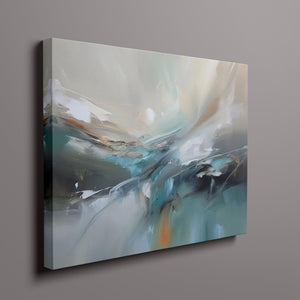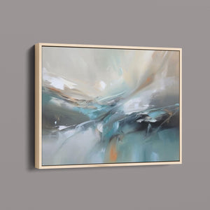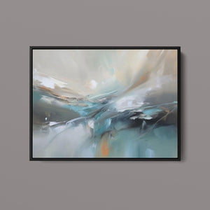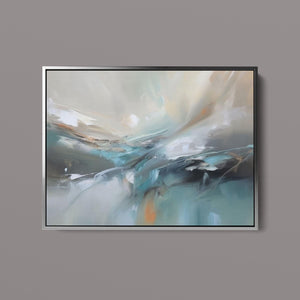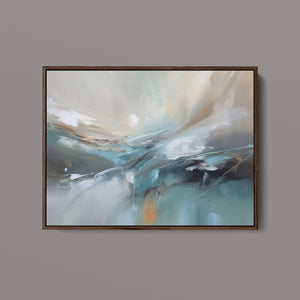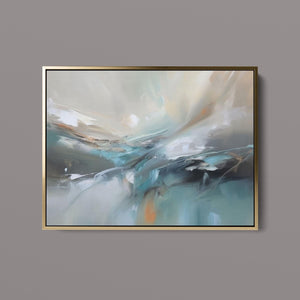"Sea Breeze II" is an abstract modern painting that beautifully represents the tranquil essence of the beach and sea. This horizontal piece (4x3) is characterized by its use of cool tones, including blue, gray, and gold, alongside soft hues of light blue, white, and beige. The artwork employs textured brushstrokes and impasto techniques to create a sense of movement and flow, reminiscent of gentle ocean waves. With its soothing, pastel colors and airy atmosphere, "Sea Breeze II" offers a calming and sophisticated addition to contemporary wall art. Ideal for modern coastal-inspired interiors, this piece brings serenity and elegance to any space, reflecting the gentle beauty of the sea through its abstract and atmospheric design.